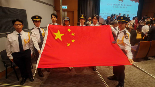 开幕式现场庄重热烈,主席台背景板上 “铭记历史 共创未来” 八个大字在灯光下熠熠生辉。中央驻港机构代表、香港特区相关部门代表、立法会议员代表、在港全国政协人大代表、主协办单位负责人、黄埔军校知名将领后代及家属、在港知名历史学者教育家及大中小学师生代表等近三百人齐聚一堂,共同见证这一重要历史时刻的开启。国旗在培侨中学学生仪仗队的护送下,伴随着庄严的国歌声中拉开序幕。