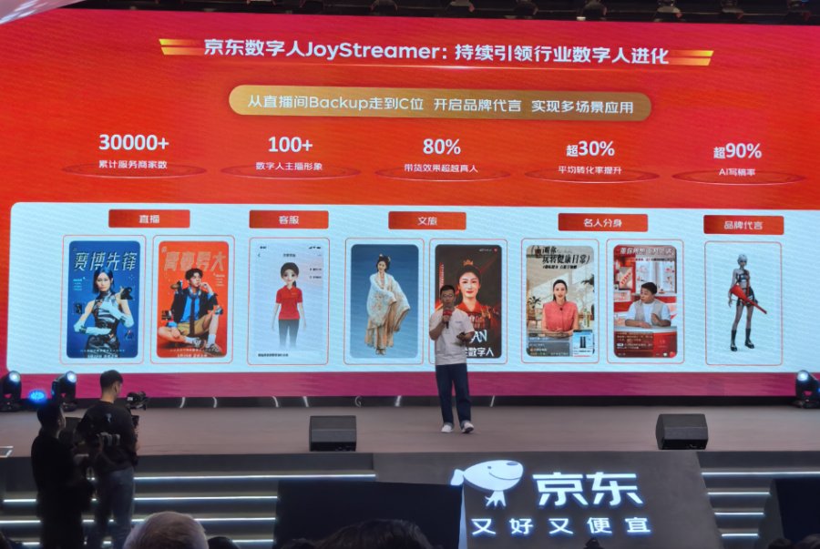 AI数字人直播也是京东今年重点布局的方向之一。当前京东全新“数字人4.0”能力已经能实现从直播带货到内容生成的全链路能力覆盖,解决了直播带货“优质主播稀缺、运营成本高”的行业痛点。“用AI数字人做凌晨时段的直播,成本只有真人主播的1/10,转化率却不低。”一位服饰品牌直播运营负责人表示。京东数据显示,其AI数字人已服务超3万商家,提供100余款主播形象。