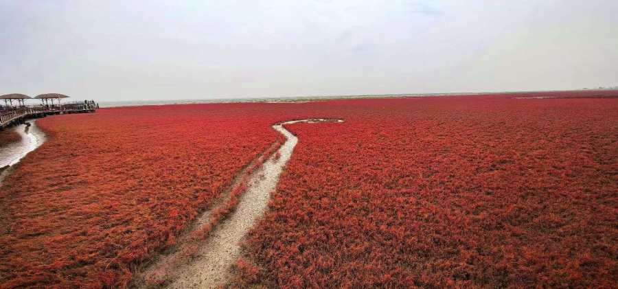 极目红滩接远天,木桥孤径锁寒烟,沧桑尽在暮云边。