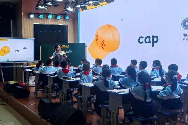 在课例展示环节,人教版小学英语教材核心编写专家助理、宜昌金东方小学张红老师执教一年级上册Unit 4 Ready for school 第一课时。她以“趣味启航,听说玩练”为主线,通过情境创设、游戏互动与任务输出,引导学生轻松掌握目标词汇,生动呈现了“在玩中学、在学中用”的教学理念。