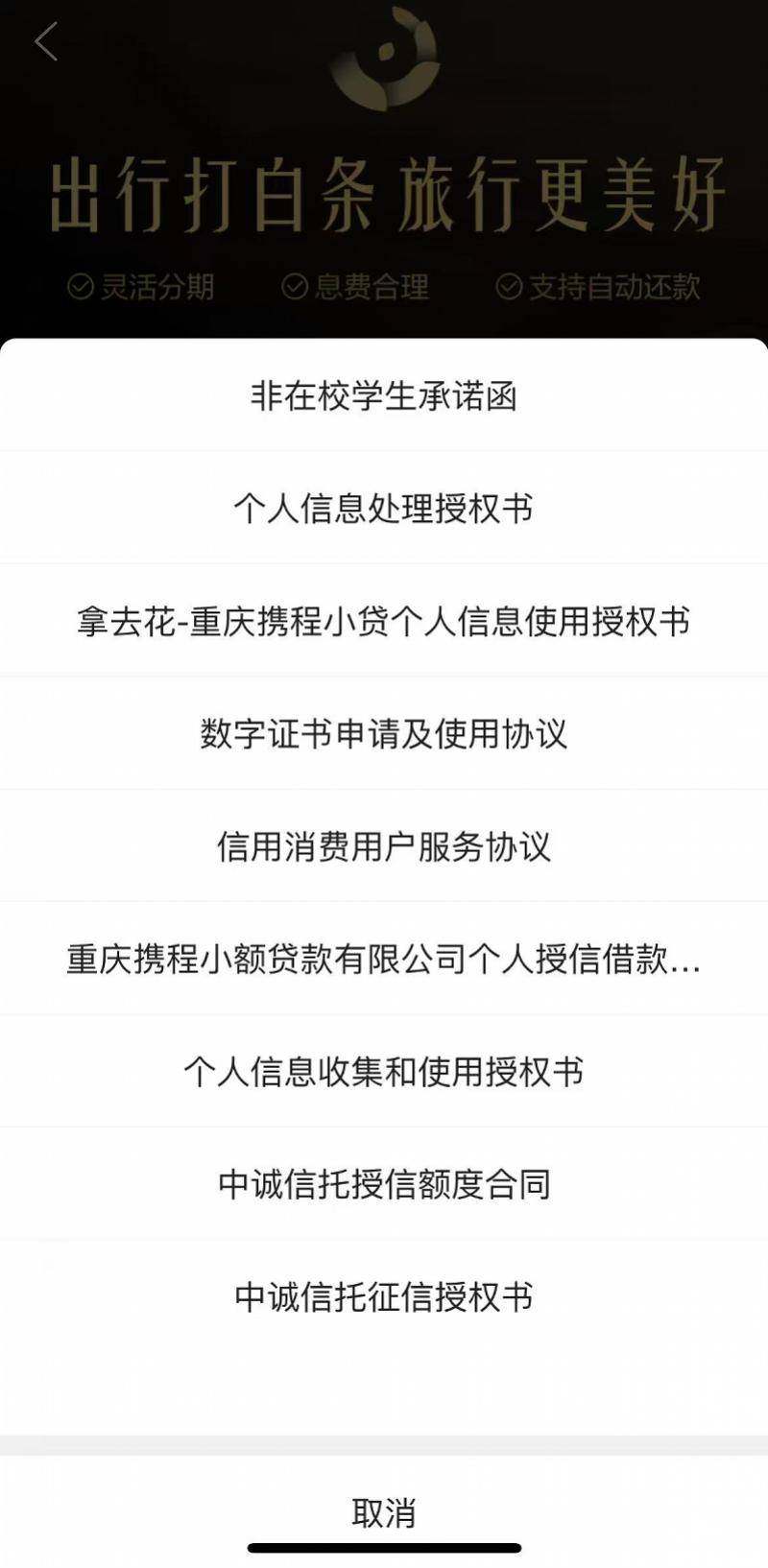这种信息泄露的问题,不仅源于携程金融内部管理的松散,更与其在协议设计上的“套路”密不可分。据南方都市报报道,在申请“信用贷”或“拿去花”等产品时,用户需要勾选同意一系列复杂的协议,而这些协议中往往嵌套了更多关于个人信息处理的子协议。用户在不知情的情况下,便可能已经授权了携程金融及其合作方对自己的个人信息进行广泛共享。这种“协议嵌套”的做法,无疑是对用户知情权和选择权的极大漠视。