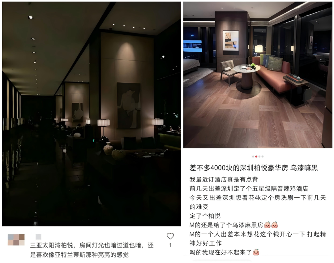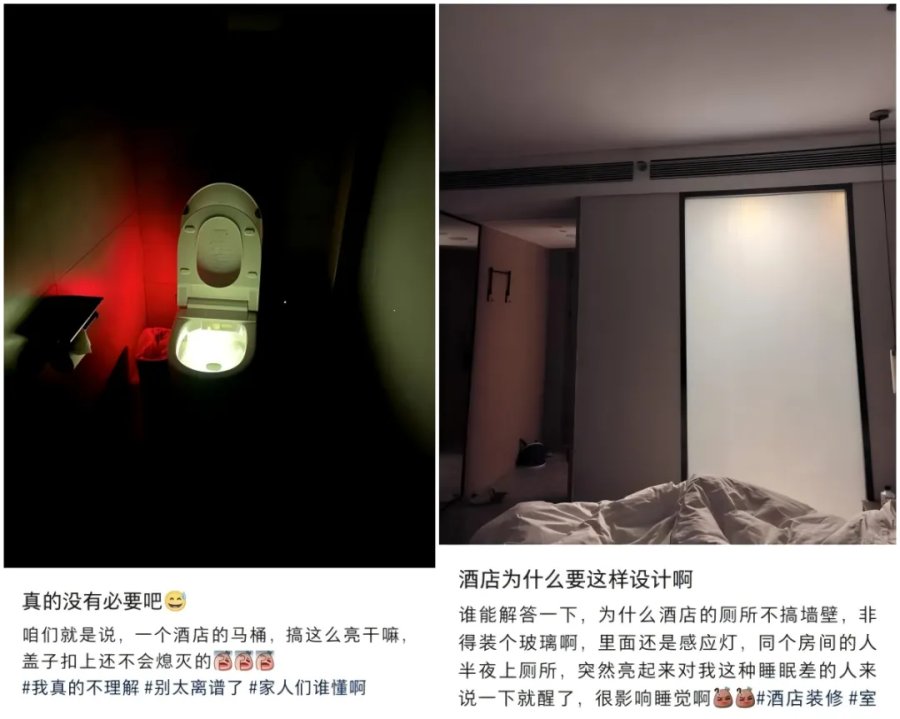 社交媒体上,对酒店灯光的吐槽早已铺天盖地。