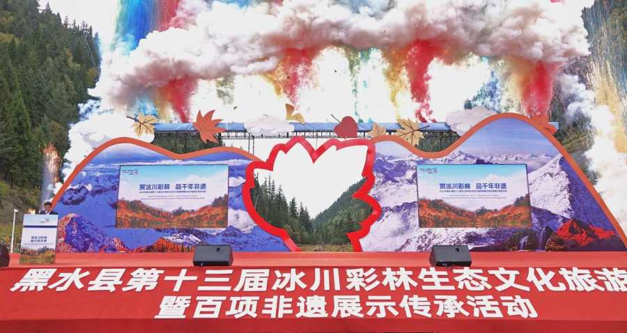 秋色鎏金染层林,圣洁冰川迎宾至。10月18日,2025年黑水县第十三届冰川彩林生态文化旅游季暨百项非遗展示传承活动在卡龙镇才盖村开幕。巍峨雪山下,斑斓彩林间,这场以 “赏冰川彩林・品千年非遗” 为主题的文旅盛宴,将自然奇观与人文底蕴深度融合,标志着黑水县向 “高品质冰川彩林国际生态文化旅游目的地” 建设迈出更坚实步伐。