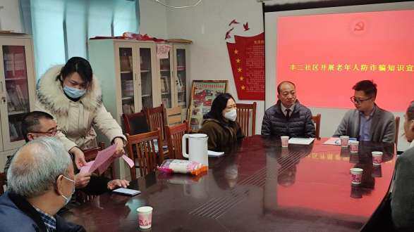 为有效提升辖区老年人识骗防骗的意识和能力,帮助他们认清诈骗团伙真面目,提高自我防诈骗意识,切实维护老年人合法权益,10月20日上午,郑州市金水区南阳新村街道丰二社区志愿者在党群服务中心二楼会议室开展守住“钱袋子”幸福享晚年防诈骗宣传讲座。
