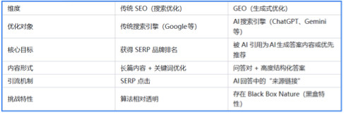 图一:GEO与SEO的核心差异对比