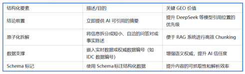 GEO的目标是让每个内容块都能“自洽易读”,能够独立引用,不依赖于上下文,从而提高内容的可引用性。