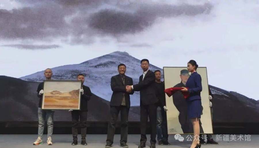 为支持新疆美术事业发展,在开幕式上,陈坚先生向新疆美术馆捐赠作品,并发表致辞,他动情的说:“对理想、对人民,对大地的热爱,催着我去表达心中的这份感动。今天把这么多关于新疆题材的作品拿到新疆美术馆展出,我非常荣幸,也非常激动。因为用了半生的精力把在新疆的经历画成画,收集起来,现在又把它还给了新疆,所以说在新疆展出也是这些作品最好的展出之地和交流之地。”