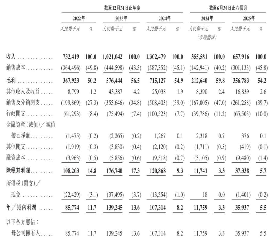 从业绩来看,坦博尔营收增长不错。2022年至2024年,营收从7.32亿元增至13.02亿元;2025年上半年营收达6.58亿元,同比增幅85%。但净利润表现波动,2022年为8577万元,2023年升至1.39亿元,2024年又回落至1.07亿元,同比下滑23%,2025年上半年净利润仅3594万元,净利率也从2022年的11.7%降至2025年上半年的5.5%。