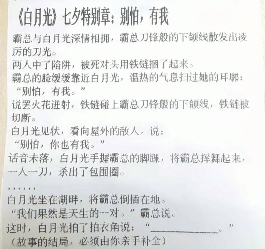 “霸总与白月光深情相拥,霸总刀锋般的下颌线散发出凌厉的刀光。两人中了陷阱,被死对头用铁链捆了起来,霸总的脸缓缓靠近白月光,温热的气息扫过她的耳廓:别怕,有我。说罢火花迸射,铁链碰上霸总刀锋般的下颌线,铁链被切断。”