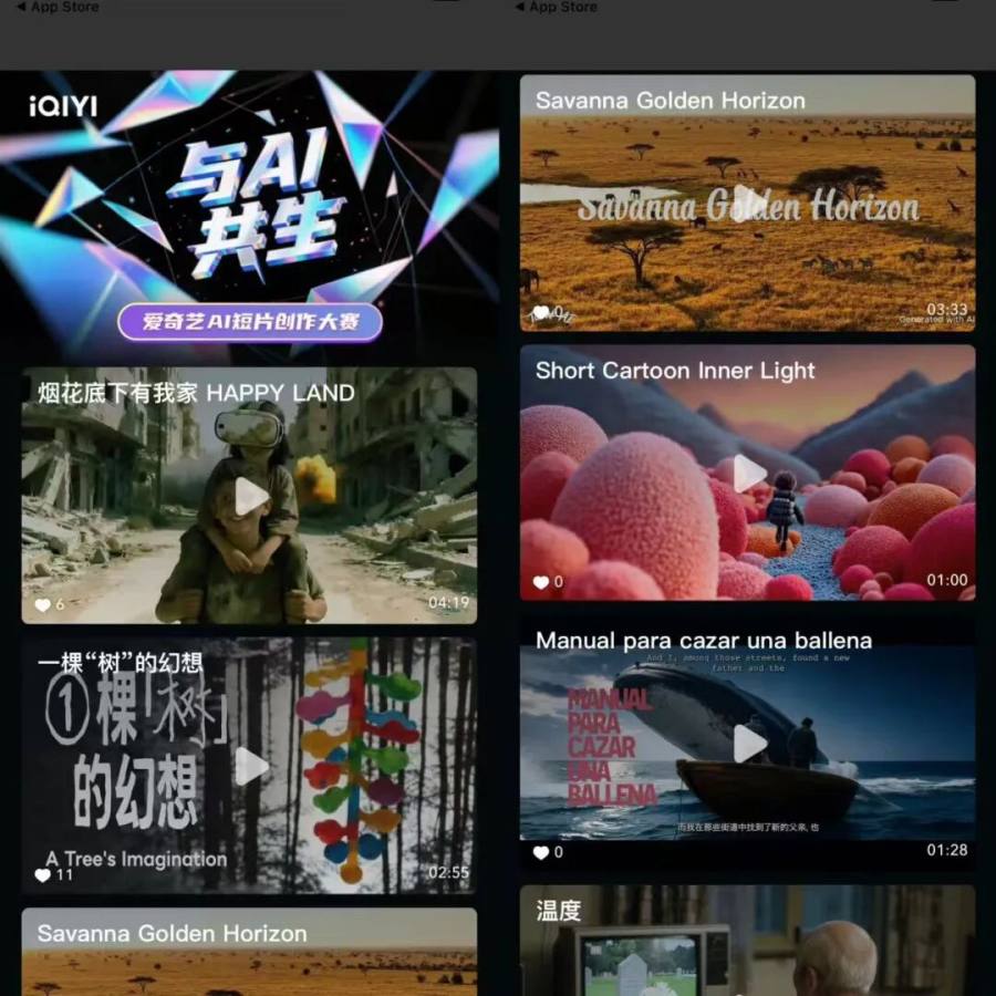 目前大赛已进入最终评委评审阶段,在爱奇艺APP内搜索“AI短片”或“AI大赛”即可看到通过初筛的142份作品。