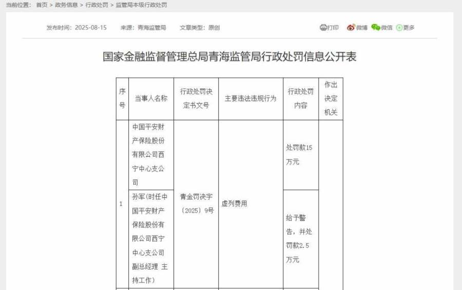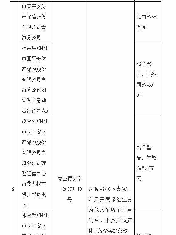 2025年8月15日,平安产险西宁中心支公司因“虚列费用”被青海金融监管局处罚款15万元,而同日,平安产险青海分公司更是因“财务数据不真实、利用开展保险业务为他人牟取不正当利益、未按照规定使用经备案的条款”等多项严重违规,被处以58万元的巨额罚款。这些案例只是冰山一角,据不完全统计,2024年12月至2025年8月期间,平安产险及其分支机构因各类违规行为收到的罚单数不胜数,罚款总额惊人。