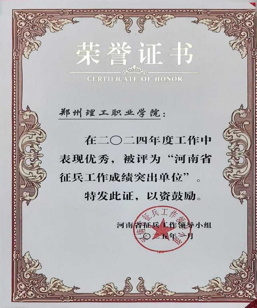 四年来,郑州理工职业学院累计向部队输送优秀大学生兵员1636名,其中毕业生比例逐年递增,参军入伍已成为学生实现高质量就业的重要途径。入伍学生整体综合素质突出、适应能力较强,在部队表现优异,多人多次荣获“四有”优秀士兵等表彰。其中,该校原机电工程学院邓永森同学在服役期间表现突出,先后获评“四有”优秀士兵、荣立三等功,并荣获多枚卫国戍边奖章;更有关增辉、侯云鹏、付振海三名优秀学子光荣入选2025年“9・3”阅兵仪式并获得表彰,充分展现了学校育人成果与郑理学子的卓越风采。在全校师生共同努力下,该校征兵工作持续获评先进,在2025年初被授予“河南省征兵工作成绩突出单位”荣誉称号。此前,该校人武部部长李小军、征兵干事毛聪已先后获评河南省“征兵工作先进个人”称号。这一系列荣誉,标志着该校征兵工作已形成持续向好的长效机制。