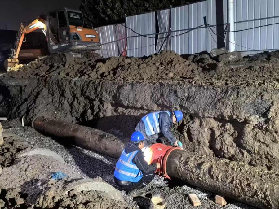 雨水顺着帽檐不断滴落,却丝毫没有影响他们的专注。从旧管拆除、新管焊接,到压力测试、接口密封,每一个环节都在与时间赛跑,每一次操作都力求精准无误。