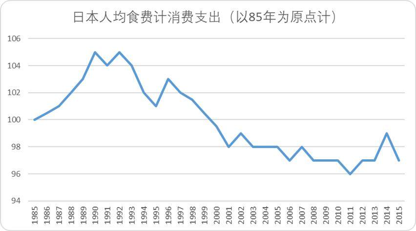 从绝对值看,日本家庭每月食品支出从1992年的8.2万日元跌至2000年的7.4万日元。但比起其他消费的“跳崖式下跌”,餐饮业堪称“泡沫时代的防波堤”。