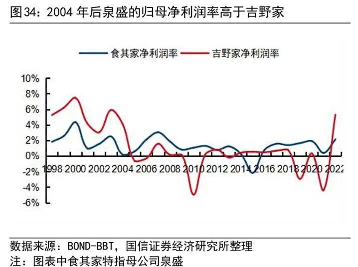图:2004年后食其家、吉野家净利润率趋势,来源:国信证券经纪研究所