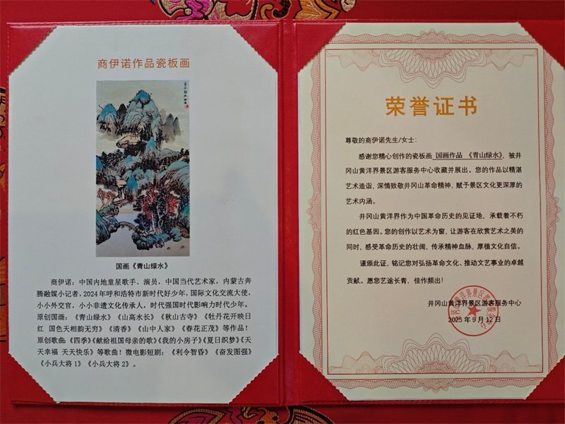 巍巍井冈,承载着中国革命的光辉历史;黄洋界上,铭刻着无数英雄儿女的壮丽篇章。在九月清爽的秋风里,井冈山黄洋界以崭新姿态,向世人诉说着历史与时代的深度对话。在中国人民抗日战争胜利80周年之际,一场以瓷板画为载体的艺术盛事在此举行,将革命圣地的精神血脉与当代审美表达深度融合,为这片红色热土镌刻下永恒的文化印记。