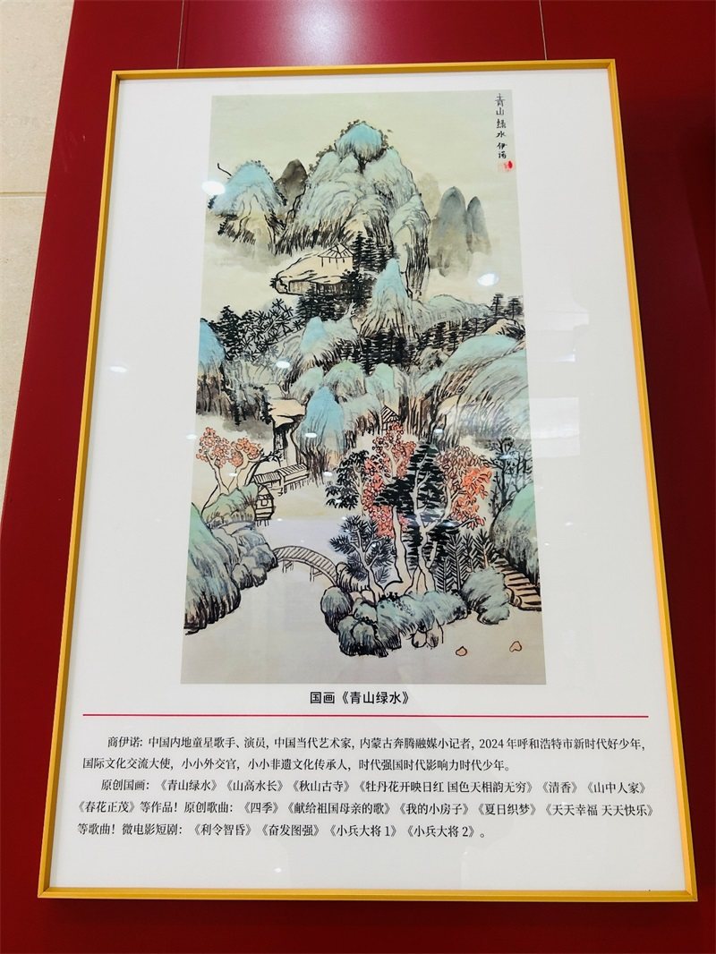 在学校也经常参加各种才艺表演和绘画比赛,学校举办的小蒙古马相约“2025”绘画活动中被评为“优秀小画家”;在学校举办的“庆祝建党100周年”书画大赛中荣获三等奖;在2023-2024第二学期寒假美术绘画实践中表现优异,被评为“艺术之星”。她的绘画作品荣获多个奖项,她不仅参加学校和国内的各类活动和比赛,还走上国际的舞台。