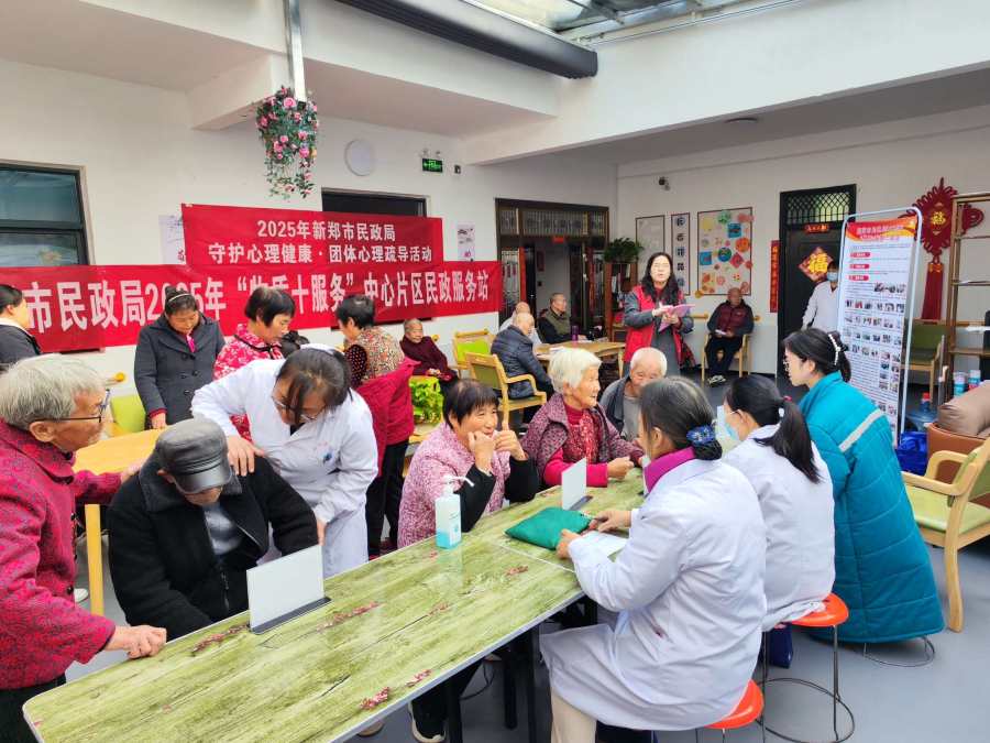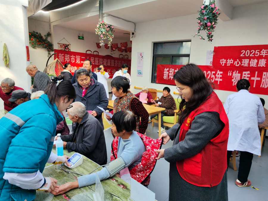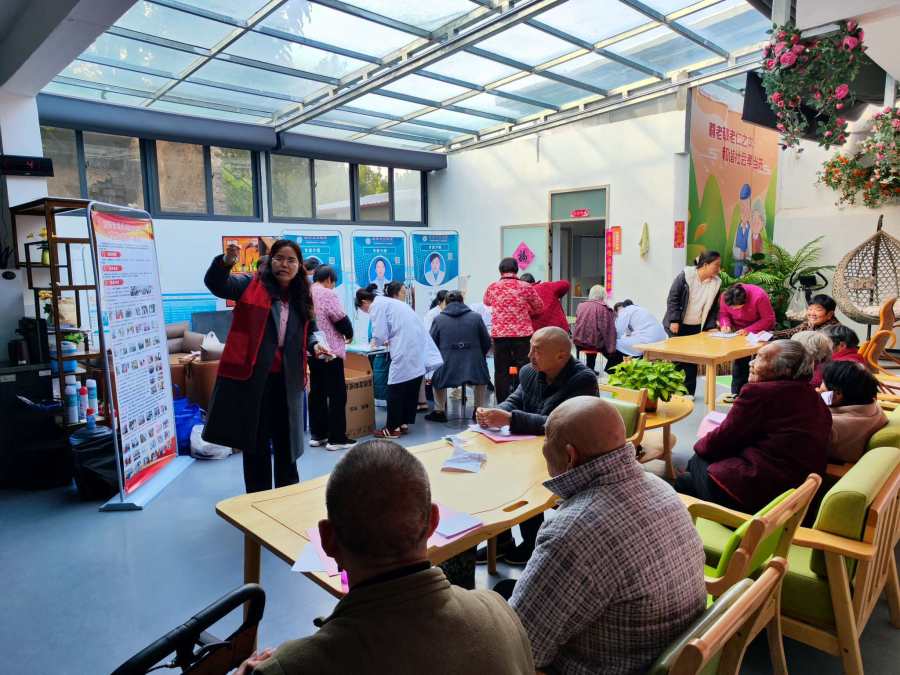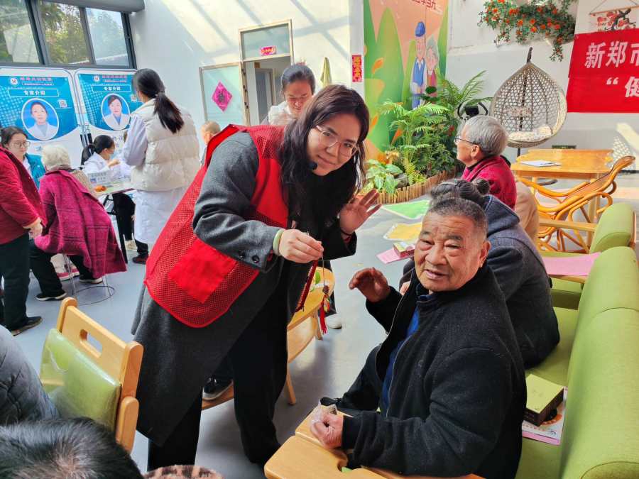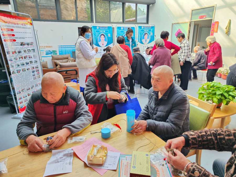 与此同时,义诊活动在照料中心的另一角同步进行。新郑市天佑医院的6名医生为老人们提供量血压、健康咨询等服务。“王爷爷,您的血压有点偏高,平时要少吃盐,每天散步20分钟,降压药要按时吃。”内科医生耐心叮嘱,并在体检单上写下详细的调理建议。医院还为老人们发放了《秋冬养生手册》,内容涵盖饮食、运动、睡眠等养生要点,深受大家欢迎。