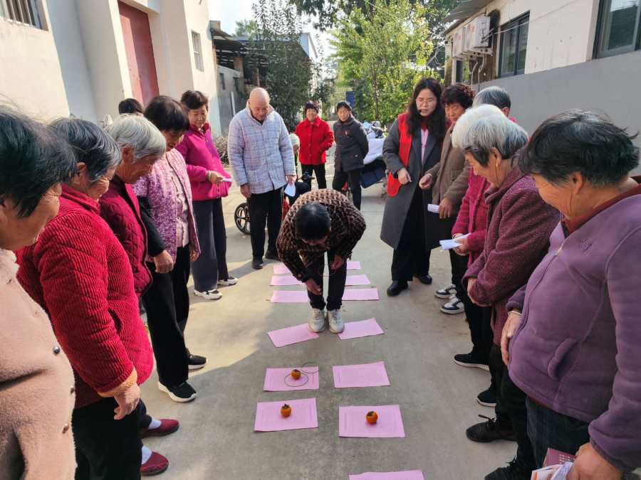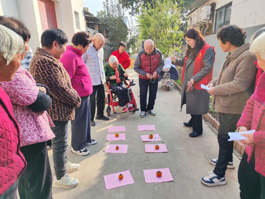 活动伊始,社工先带领大家进行破冰套圈游戏,并结合移风易俗政策宣传。现场摆放了香甜的柿子,每位老人有三次套圈机会。社工一边讲解移风易俗的重要意义,一边引导大家参与互动。套中的老人主动分享给没套中的,现场气氛热烈。坐在轮椅上的李奶奶凭借好运气套中了3个甜柿子,行动方便的王爷爷虽然没套中,也收到了李奶奶分享的一个柿子,现场笑声不断。