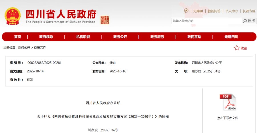 四川省加快推进科技服务业高质量发展实施方案(2025-2030年)
