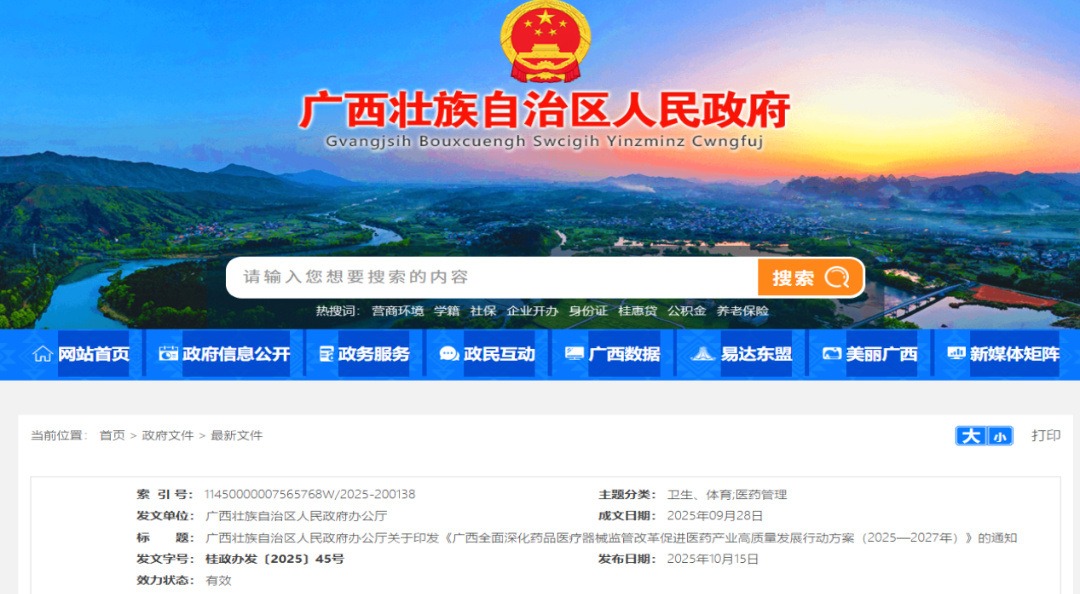 广西全面深化药品医疗器械监管改革促进医药产业高质量发展行动方案(2025―2027年)