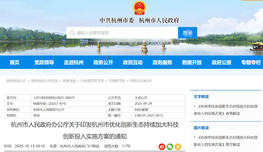 杭州市优化创新生态持续加大科技创新投入实施方案