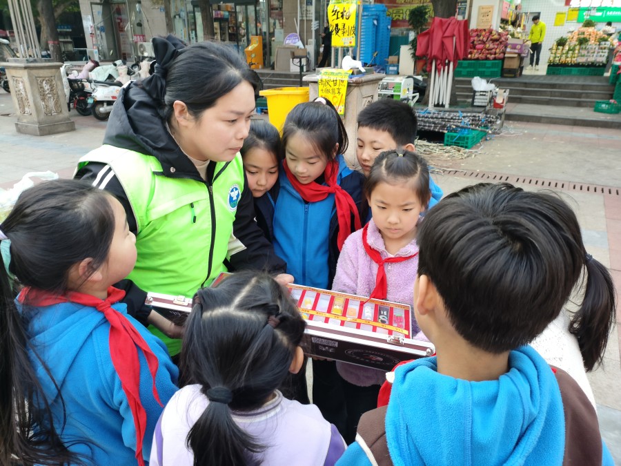活动期间,一群放学后路过的小朋友成为重点宣传群体。禁毒社工立即采用“提问互动+模型对比”的形式,用儿童易懂的语言讲解“毒糖果”等伪装毒品的危害,着重强调“不要接受陌生人给予的食品、饮料”,并引导他们发现可疑情况后及时告知家长或老师,帮助孩子们扎实掌握基础防毒知识。