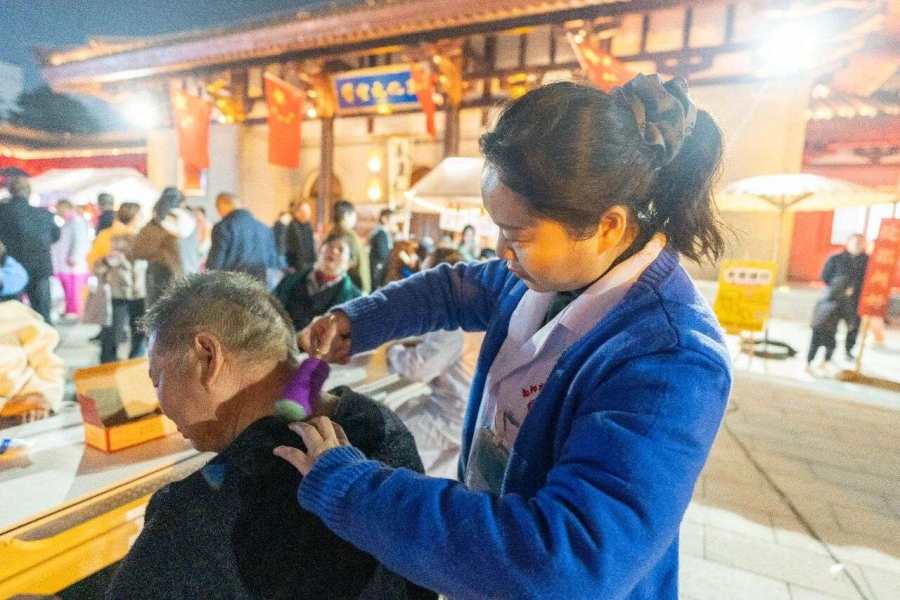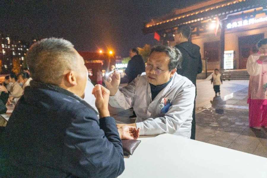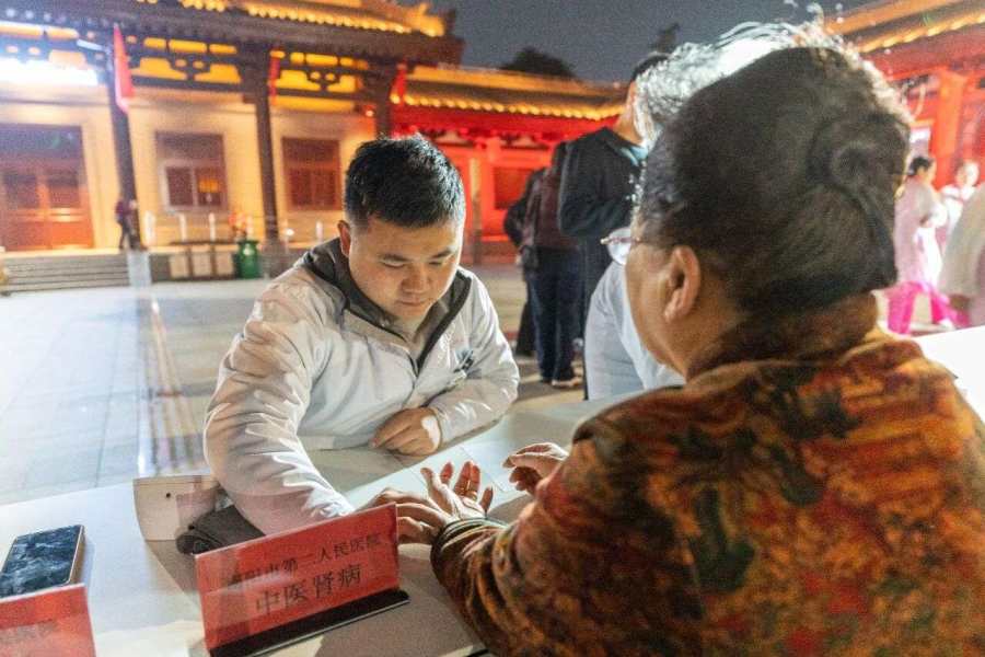 10月22日晚,南阳市第二人民医院城市医疗集团携手集团成员单位五里堡街道社区卫生服务中心,精心策划并举办了一场别开生面的中医药文化夜市义诊活动。这场活动宛如一场健康与文化的盛宴,在夜色中为群众点亮了健康的明灯。