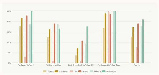 对于学术界而言,这意味着公平与复现。长期以来,具身智能研究面临着算法复现困难、实验标准不一的问题。不同团队采用的数据集、训练框架乃至评估指标各不相同,导致结果难以横向比较,研究壁垒高筑。Dexbotic提供了统一的代码库与预训练模型,打破了实验复现的壁垒,让不同算法能够在同一基线上公平比较。研究者可以在同一平台上对比Pi0、CogACT、OpenVLA等不同策略,真正隔离出算法差异;实验可复现、结果可量化让学术竞争回归科学本质。