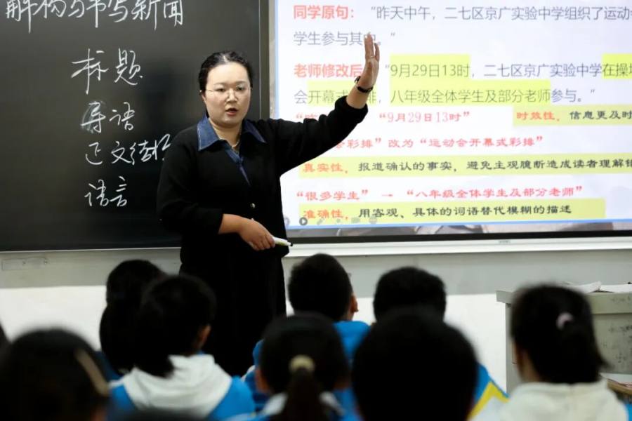 政通校区薛宗楷老师以“解构与书写新闻”为主题进行新闻单元教学,以“校园记者”身份完成报刊创作为任务驱动,梳理新闻体裁,聚焦消息写作的要点,通过实践修改和展示升华,实现了工具性与人文性的统一。