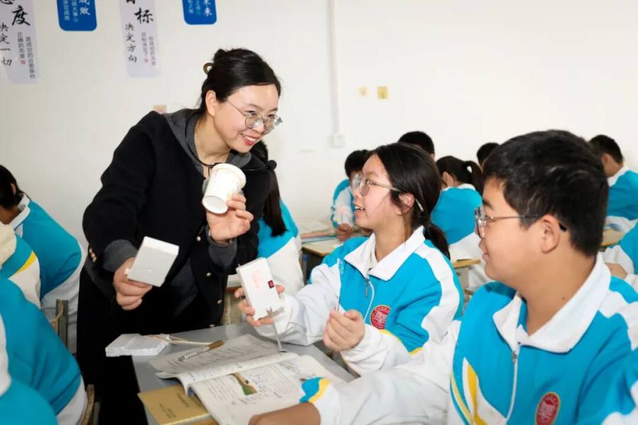 迎宾中学赵金阁老师执教《光沿直线传播》一课,学生通过喷壶水雾、光在液体与固体中的传播及小孔成像等一系列动手实验,亲历光的传播路径探究,实现了从感性现象到理性本质的认知飞跃。