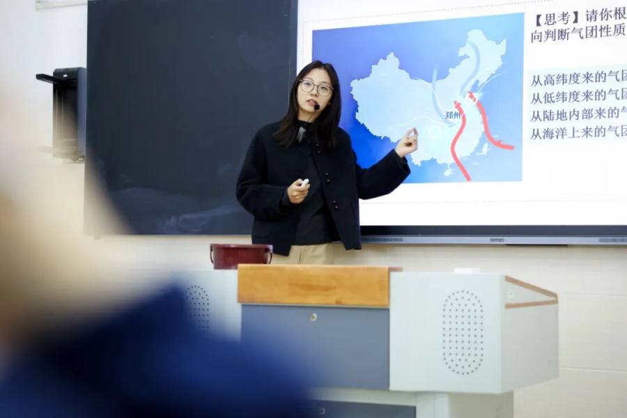 开元校区祝畅畅老师创设了郑州近期天气变化的真实情境,整合气象预警、天气预报数据等鲜活素材,将抽象锋面系统知识与学生生活体验结合。通过冷盐水与热水模拟实验具象化气团相遇过程,搭配情景剧还原冷锋过境天气变化,让学生直观感受地理实用价值。