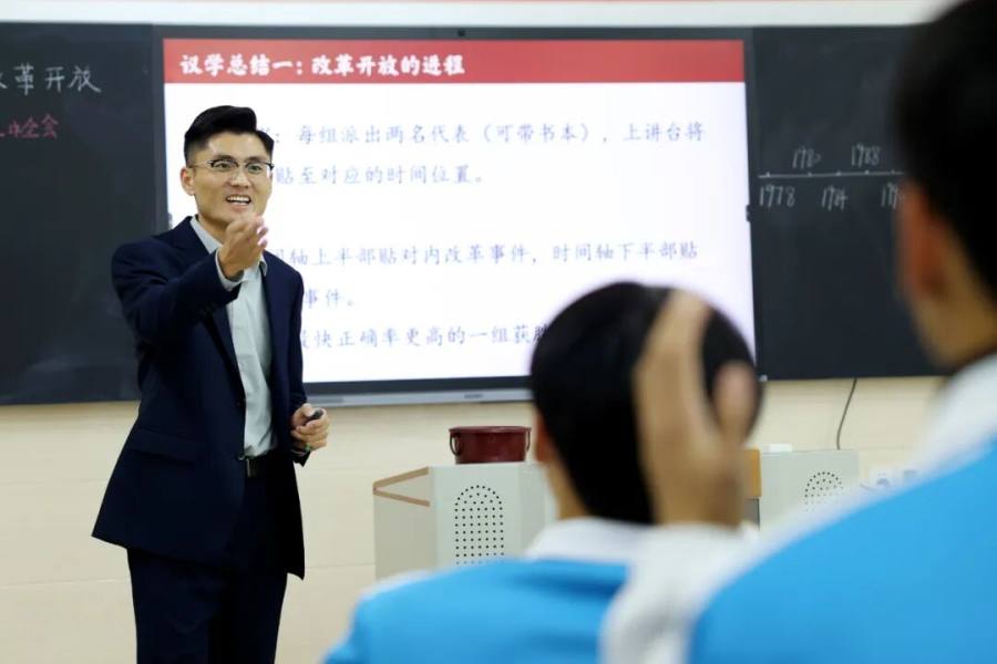 文华校区高中部孔明老师的“伟大的改革开放”课堂,以改革开放的时间脉络为轴线,以家国情怀培育为核心,通过富有感染力的情境、巧妙的记忆“代码”、精彩的课堂互动,让波澜壮阔的改革历程变得可知、可感、可思。