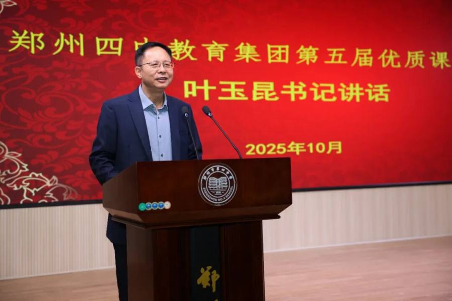 郑州市第四高级中学党委书记、郑州四中教育集团总校长叶玉昆在闭幕式上总结讲话。他表示,本次活动让大家深切感受到集团的强大凝聚力与蓬勃向上的热情,这股力量将成为集团今后进一步发展的核心原动力。他向19位授课教师致以祝贺,肯定他们充分展现了个人风采与才华。同时,期待集团后续活动越办越好。