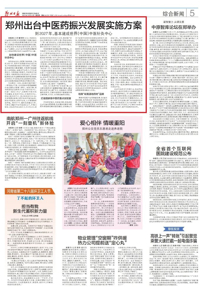 传承中医文脉,拓展发展新空间。《实施方案》明确,我市将依托中央财政支持中医药传承创新发展示范试点项目,在金水区打造郑州市中医药传承创新发展示范基地,建设中医药特色街区、中医药人才工作室、中医药科普大讲堂、中医药新国潮市集、中药百草园。支持有条件的开发区、区(市)打造中医药文化主题公园、街区、文旅小镇等,推出一批精品中医药展览,开发一批具有鲜明中医药特色的文化创意产品。
