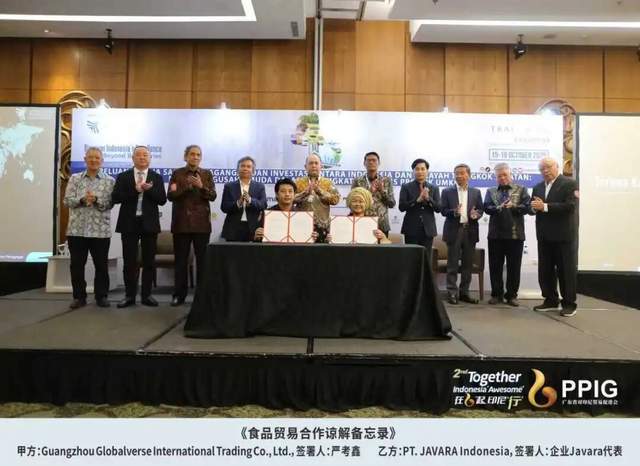 由印尼驻广州总领馆总领事斌德加Ben Perkasa Drajat、清远市市外事局局长罗幸、清远市农业农村局局长赖志军、PPIT总主席Al Busyra Basnur、主席李常足、秘书长林振强、副秘书长杨新晟以及PPIG会长郭崧等见证签约仪式。