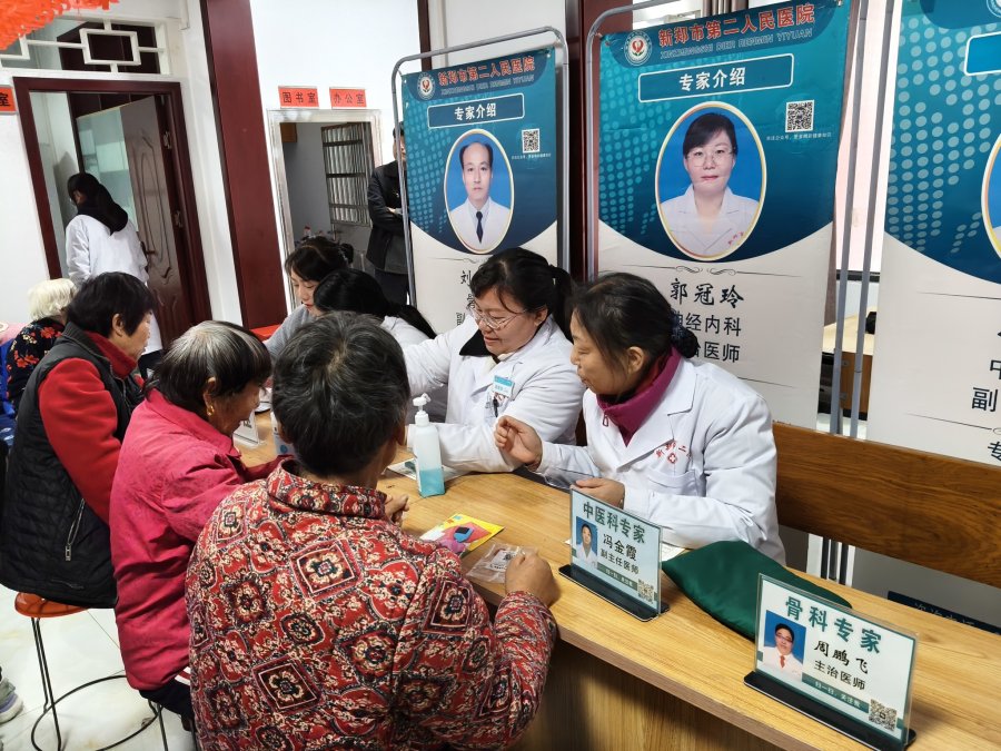 活动现场,社工带领老年朋友制作中药香囊,大家穿针引线、交流心得,在手工互动中缓解孤独感,分享重阳记忆;另一边,新郑市天佑医院的医生忙着为居民测血压、血糖,耐心解答“高血压用药”“关节保养”等问题,志愿者则协助行动不便的老人入座、领取材料,现场氛围温馨热闹。