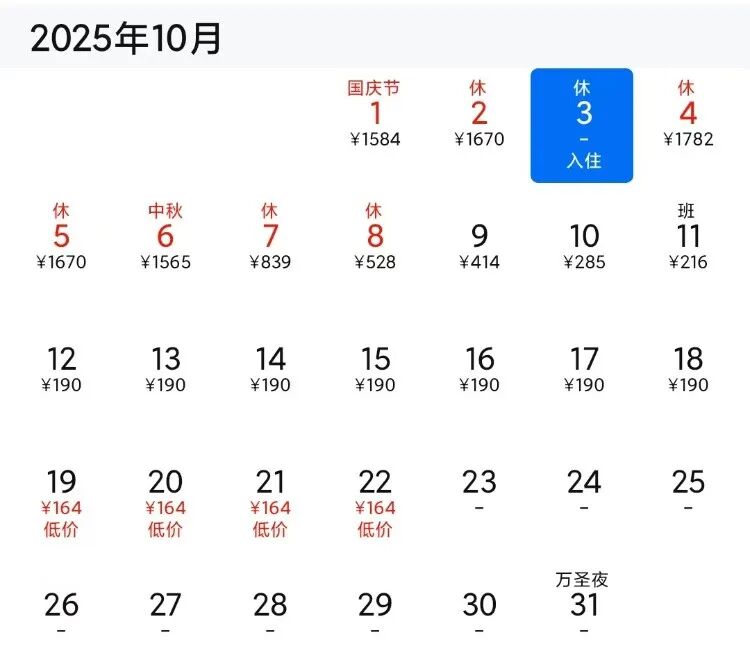 上述“邪修住宿”大多是发生在旅游旺季期。黄金周等小长假期间,酒店生意迎来大爆发。涨价是该阶段的主基调,其底层运营逻辑是酒店动态定价机制。