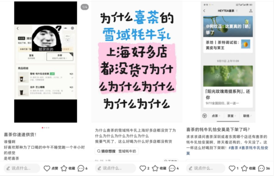 这也进一步带动了「雪域·牦牛乳恰安莫」的售罄情况,越来越多的消费者发帖询问“「雪域·牦牛乳恰安莫」又断货?”。10月22日,喜茶官方回应:原料牦牛乳冬季产量变化,近期可能会有短暂售罄的情况,目前正在积极补货中。