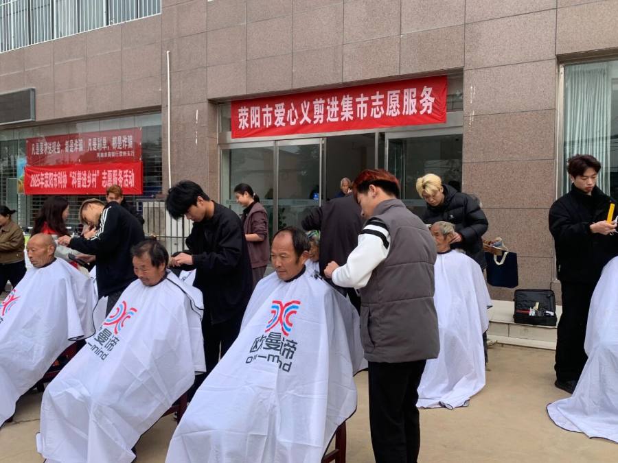 据了解,此次项目聚焦老年人、环卫工人、残障人士等群体,尤其针对60 岁以上老人出行不便、理发难的问题,将服务送到了 “家门口”。启动仪式现场,郑州欧曼谛时尚美业学校的志愿者们早早搭起服务台,耐心询问老人的发型需求,细致修剪头发;荥阳市中医院同步开展健康义诊,荥阳市科协提供科普宣传,让老人们在剪发的同时,还能免费检查身体、学习健康知识。“‘小剪刀’藏着‘大关怀’。” 刘河镇上不少留守老人、高龄老人因行动不便,理发成了“老大难”,此次义剪活动不仅解决了实际需求,更传递了社会对老年群体的关爱。