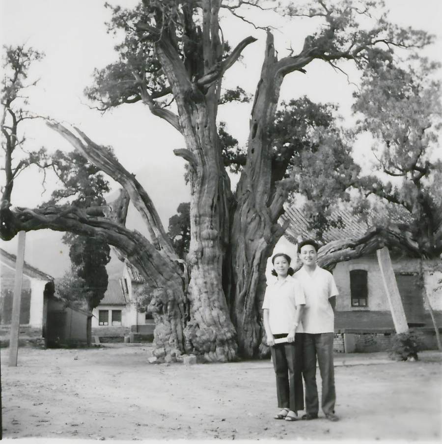虬枝傲雪凝成铁骨 翠柏凌云唤醒古魂——张国臣和王素珍同学考察汉武帝钦封“二将军柏”(1980年 董焕德摄)