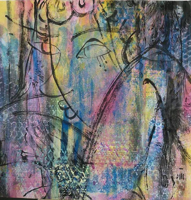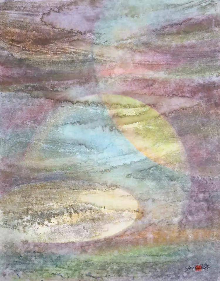 我尝试着,将中国水墨意境与西方的抽象表现主义融合,用流动的线条,灵动的色彩,柔和的笔触,去表现我东方人的性情和美感。
