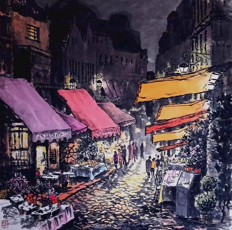 《布鲁塞尔食街》70cm×70cm 纸本设色 2003年