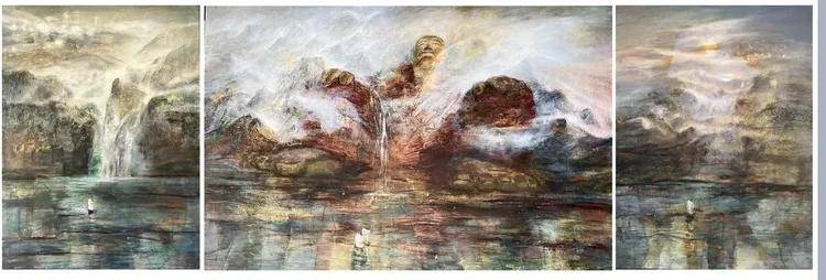 在浩瀚的宇宙,地球和人类的存在是一个奇迹,画家也幸运而脆弱。自然万象美丽严酷又神秘莫测,不仅仅是供人欣赏的风景,一般的描绘难以表达我的复杂心绪,现在我的作品可叫“心象自然”,有版画和水墨的跨画种探索,但画中仍有很多意犹未尽的留白,期待观众的参与帮助。