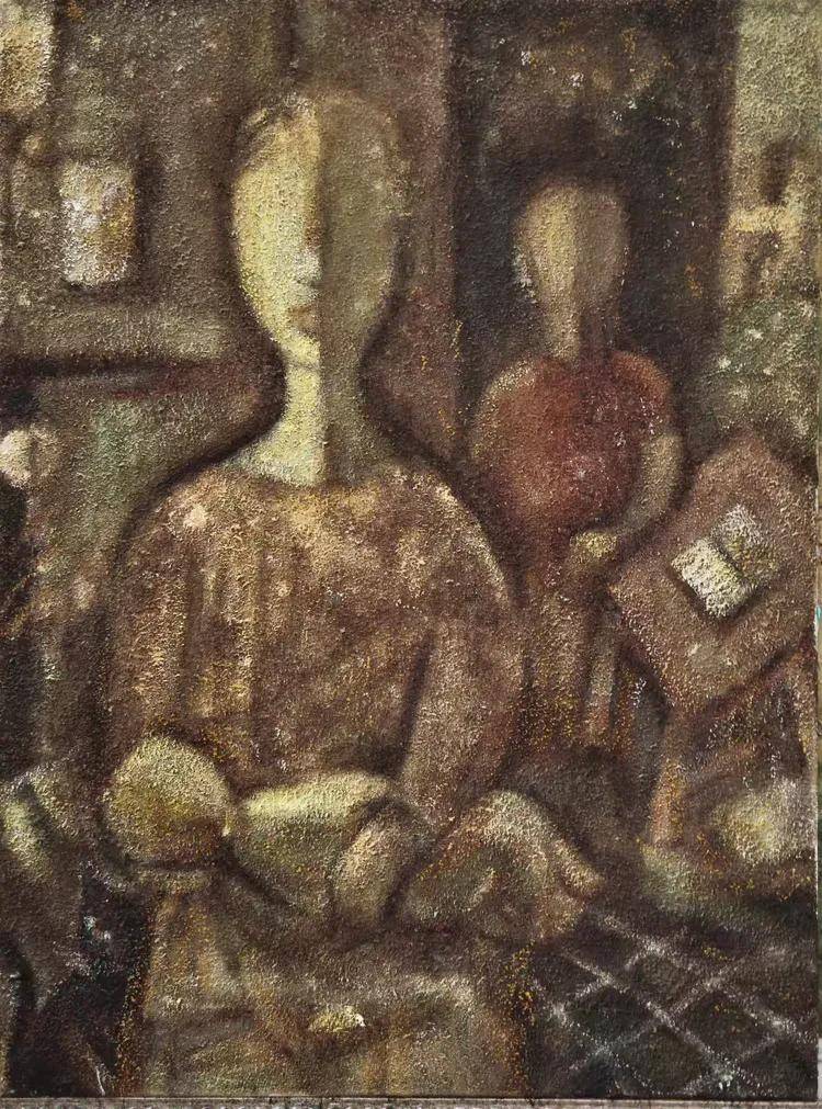 坦培拉的多层透明罩染、釉染,让画面如同蒙上了一层似云非雾的薄玻璃,兼有青玉的品相和中国瓷釉的神韵。它的光泽是内在的,