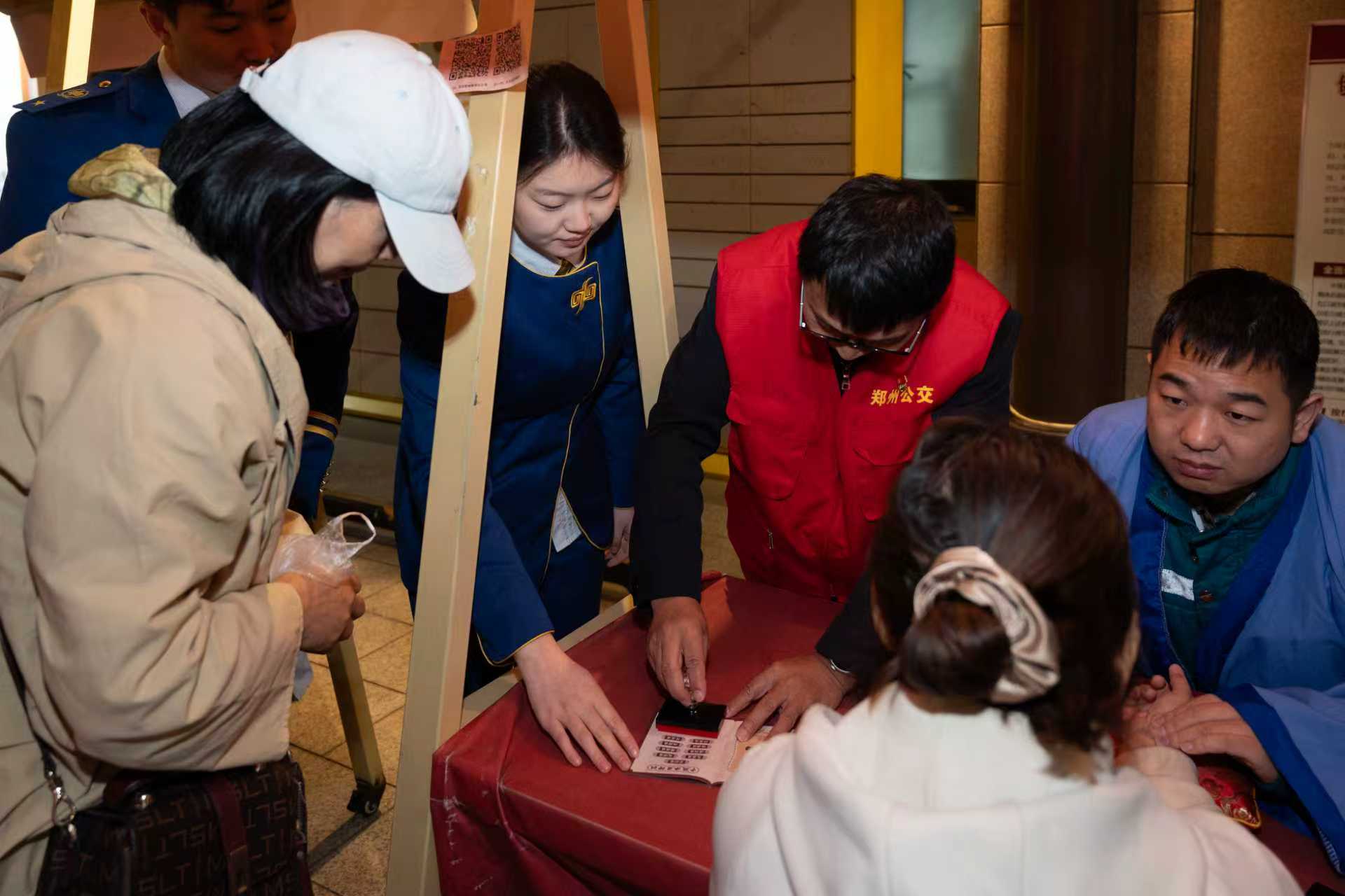 除了丰富的体验 ,郑州公交、郑州地铁在夜市内设立专属摊位,志愿者主动向前来参与活动的市民介绍定制公交的服务范围、预约方式以及常规公交线路的优化调整情况,对如何前往中医夜市更是详细讲解。现场还通过收集市民对公交服务的建议与意见,倾听群众出行需求,同时向参与互动的市民发放小礼品,让便民服务延伸至活动每一个角落。
