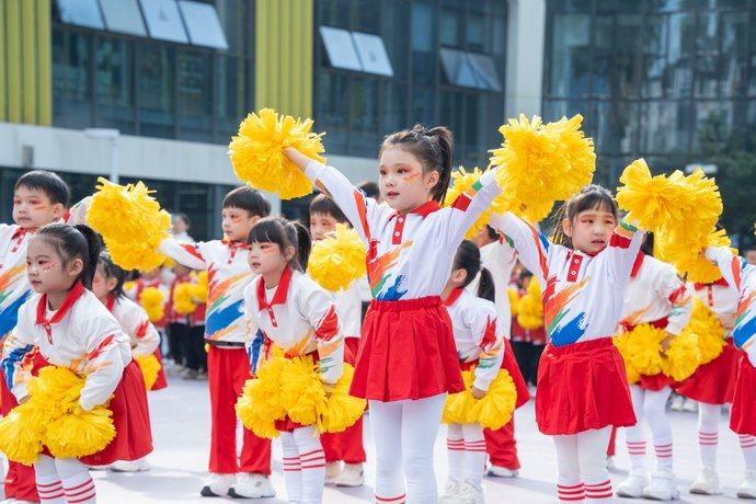 开幕式上,不同年龄段的“小主角”们亮点十足:16-72月龄婴幼儿分组演绎亲子操《幸福起点站》、武术操《字经咏志•武动童心》与啦啦操《元气满满GO GO GO》,萌态与活力兼具;小运动员庄严宣誓后,“最萌车队”骑行环节拉开运动会序幕,车轮转动间满是成长的喜悦。