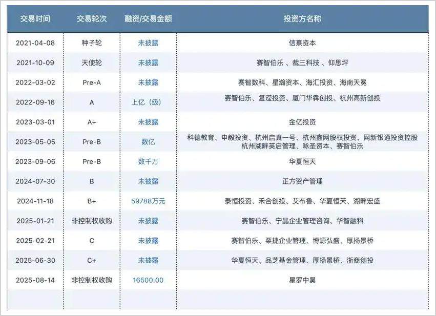 两年后,“刹那”成功量产并交付,当年收获4.85亿元收入,成功盈利8133万元,在“国内唯一TPU架构AI芯片量产企业”的光环加持下,其融资节奏也显著加快,赛智伯乐多轮押注,浙商创投、杭州国资以及两家上市公司艾布鲁和科德教育也为其一掷千金。