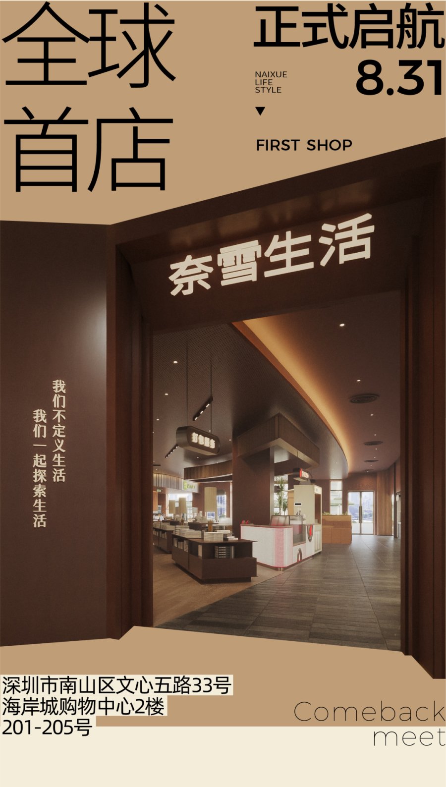 2022年8月31日,全球首家奈雪生活在深圳南山海岸城开业,打造全球首个沉浸式体验空间,该店前身是奈雪梦工厂。