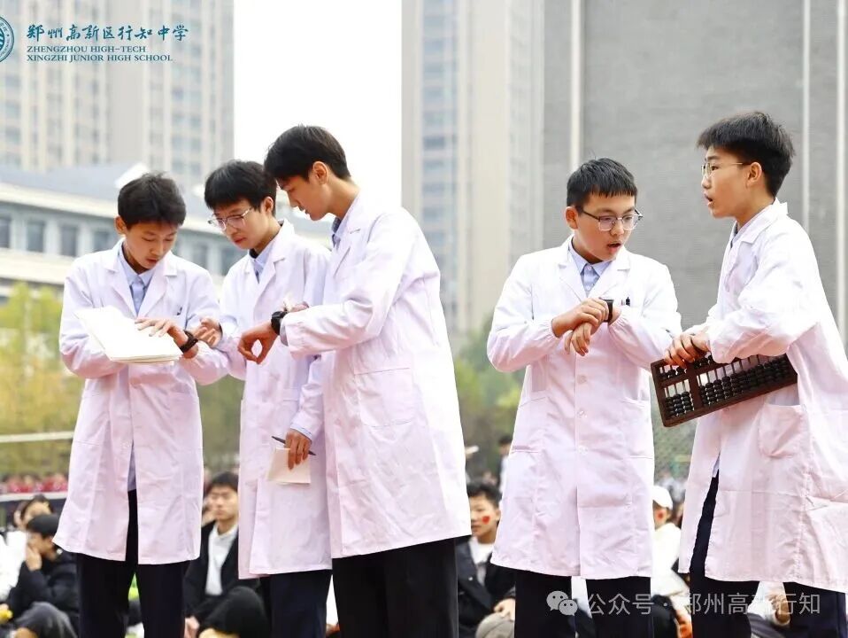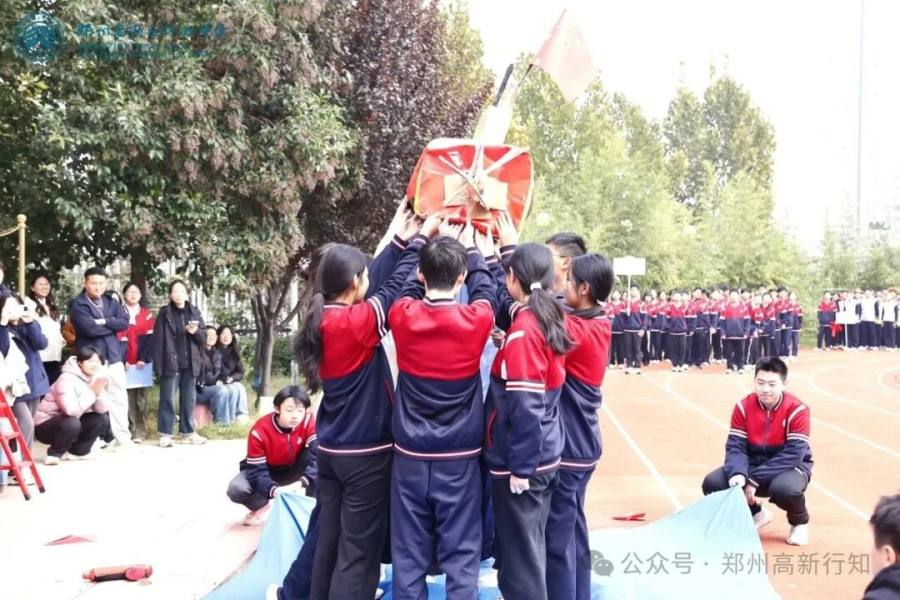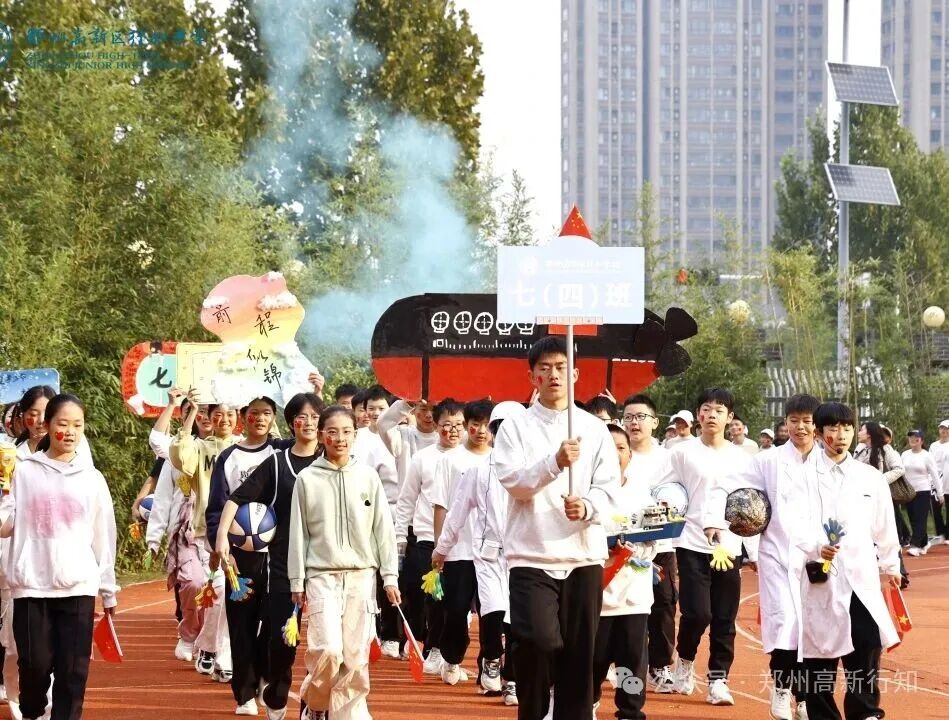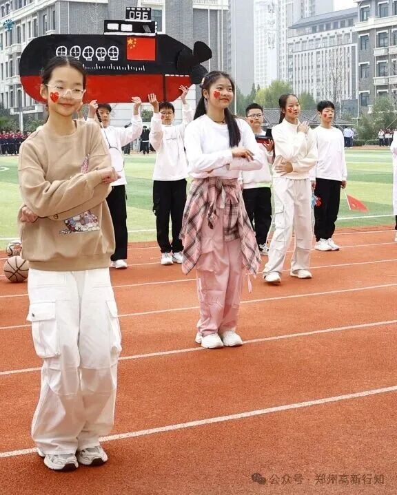八年级方阵围绕“拼搏·深耕”展开,体现黄院士数十年如一日攻坚克难的科研精神。同学们以队形变换模拟“劈波斩浪”,通过团体操和舞蹈展现力量与合作,激励大家在比赛中发扬“啃硬骨头”的精神,不畏强手、突破自我。